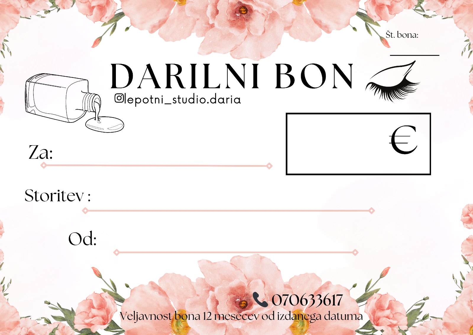 Za posebne priložnosti podarite darilni bon Lepotnega studia Daria